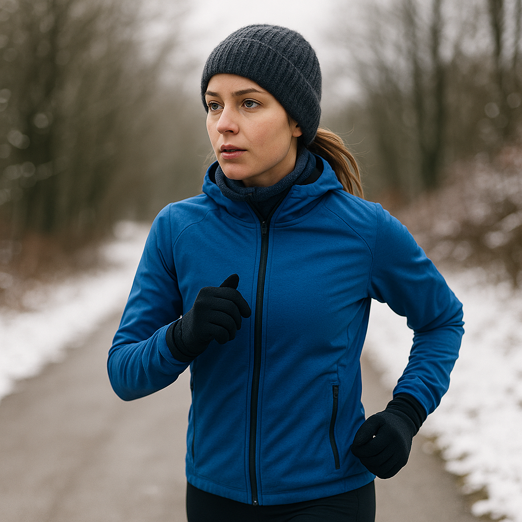 Na hlavu patří čepice. Čelenka je nedostatečná. Na rukou se bráníme proti zimě kvalitními látkovými rukavicemi. Na zledovatělých cestách se doporučují boty odolné proti skluzu, abyste předešli pádu. Na vybavení opravdu nešetřete. Pokud leží na zemi sníh a ledová vrstva je lepší se vyhnout běhání.