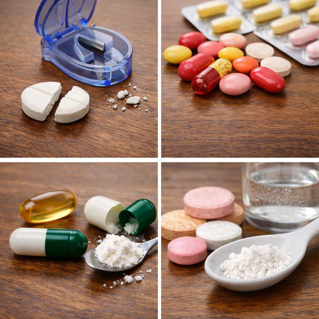 Při nesprávném dělení, zmenšování nebo drolení různých lékových forem mohou nastat problémy. Při nesprávném rozdělení se nachází v jedné polovině tablety více účinné látky než v druhé. Díky tomu může lék náhle účinkovat silněji, než je požadováno, a může vyvolat silnější nežádoucí účinky. Nebo je naopak množství účinné látky nižší a účinek nedostatečný. Některé léky potřebují pro své správné fungování acidorezistentní obal, který zabezpečí, že se lék nerozpadne při průchodu žaludkem působením kyselých žaludečních šťáv a doputuje až do střeva, kde dochází k uvolnění účinné látky a jeho vstřebání do krve a krevním oběhem do místa účinku. Pokud takový lék rozlomíte, zbavujeme ho této ochrany. Další problém nastává, pokud rozlomíme tabletu, která je označena jako retardovaná. Jedná se o tabletu s řízeným uvolňováním, která má prodloužený a postupný účinek. Pokud se taková tableta rozpůlí nebo rozdrtí, dojde k okamžitému a masivnímu účinku léku najednou. Poté je ovšem pacient celý den bez potřebného účinku léčiva. Nejčastější a nejzhoubnější je tento problém u léků na vysoký krevní tlak, antihypertenziv. Zcela nevhodné je půlení nebo drcení tablet, které vypadají jako lentilky. Říká se jim dražé. Po spolknutí takové tablety může dojít k nechtěnému zvracení nebo nevolnosti.
