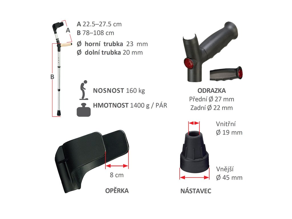 | Od držadla k opěrce předloktí: | 22,5–27,5 |